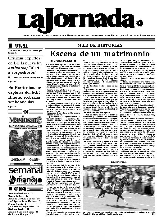 La Jornada, Coordinación de Sistemas Francisco Petrarca 118, Col. Chapultepec Morales, delegación Miguel Hidalgo México D.F. C.P. 11570 Teléfono (525) 262-43-00, FAX (525) 262-43-56 y 262-43-54