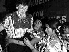 Durante el encuentro de Mary Robinson con ONG en San Cristóbal de las Casas, habitantes de Acteal le regalaron un atuendo típico Ť Foto: Guillermo Sologuren
