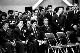 Estudiantes de secundaria que asistieron al Polyforum Siqueiros para presenciar el foro Movimiento por la Unidad de la Nación, última llamada Ť Foto: Arturo Guerra