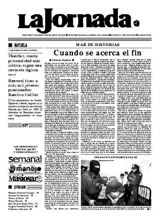 La Jornada, Coordinación de Sistemas Francisco Petrarca 118, Col. Chapultepec Morales, delegación Miguel Hidalgo México D.F. C.P. 11570 Teléfono (525) 262-43-00, FAX (525) 262-43-56 y 262-43-54