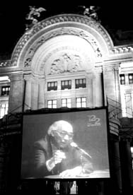 Afuera de Bellas Artes hubo protestas y se leían carteles como el siguiente: ''El Palacio es de todos, y Saramago también, no de la elite cultural''. Los boletos ``de hasta abajo'' fueron para el Tec, decían los inconformes Ť Foto: Carlos Cisneros