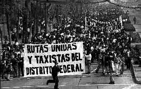 Conductores de microbuses y taxis marcharon ayer desde el Monumento a la Revolución hasta Los Pinos, para exigir la suspensión de operativos a cargo de las autoridades capitalinas y que se investiguen presuntas irregularidades en la Secretaría de Transporte Ť Foto: Carlos Ramos Mamahua