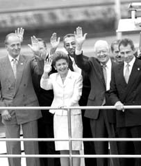 Mireya Moscoso, acompañada por el rey Juan Carlos, Jimmy Carter,