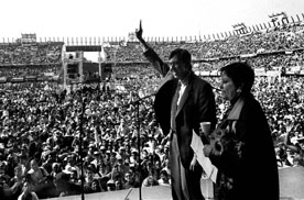Cuauhtémoc Cárdenas protestó como candidato de la coalición de cinco partidos ante más de 50 mil personas reunidas en el Foro Sol. Aseguró que el gobierno que él encabece será honrado y no dará cabida a los Gurría ni a los Espinosa Ť Foto: José Antonio López