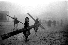 Residentes de Texcatepec, Veracruz, trasladan madera para la construcción de una cocina comunitaria Ť Foto: Rosaura Pozos