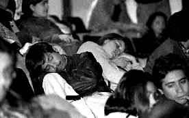Integrantes del CGH duermen durante la asamblea realizada en la Preparatoria 2 Ť Foto: María Luisa Severiano