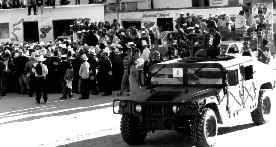 Un vehículo del Ejército, parte de un convoy de 25 automotores, pasa frente a un grupo de campesinos inconformes en la comunidad de Tlatlauquitepec, en la región de la montaña. Es parte de la militarización en el sureste mexicano, afirmó un soldado Ť Foto: Alejandrino González
