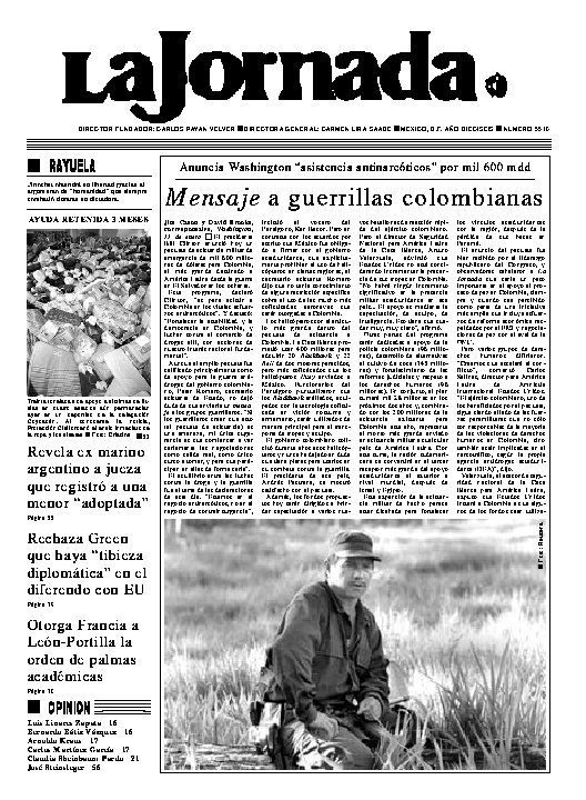 La Jornada, Coordinación de Sistemas Francisco Petrarca 118, Col. Chapultepec Morales, delegación Miguel Hidalgo México D.F. C.P. 11570 Teléfono (525) 262-43-00, FAX (525) 262-43-56 y 262-43-54