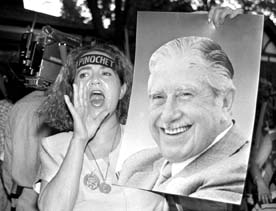 Una simpatizante de Augusto Pinochet celebra en Santiago de Chile el anuncio del gobierno británico sobre la posible liberación del senador vitalicio Ť Foto: Ap