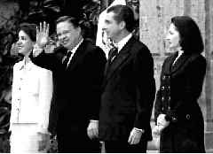 El presidente de Costa Rica, Miguel Angel Rodríguez, acompañado de su esposa, durante su visita oficial a Los Pinos, en donde signó ocho acuerdos junto con Ernesto Zedillo