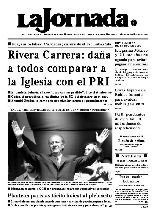 LAGOS, PRESIDENTE ELECTO; MILES LE EXIGEN ``¡JUICIO A PINOCHET!''