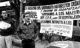 Los profesores politécnicos José Humberto Pérez Espinoza y Juventino Santiago Ruiz realizan una huelga de hambre a las afueras de la sede de la ONU en México para exigir su reinstalación en esa casa de estudios Ť Foto: Frida Hartz