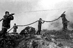 Personal de Bomberos, del Ejército y la policía combatió durante 12 horas una conflagración en el basurero municipal ubicado en Chiconautla Ť Foto: Carlos Mamahua