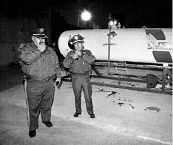 Policías preventivos custodian un depósito clandestino de gas, en Francisco del Paso y Troncoso, que fue clausurado por la delegación Iztacalco * Foto: José Núñez