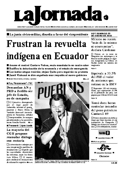 El líder indígena Antonio Vargas, miembro de la fugaz junta cívico-castrense que derrocó al presidente ecuatoriano Jamil Mahuad luego de diversas manifestaciones Ť Foto: Ap