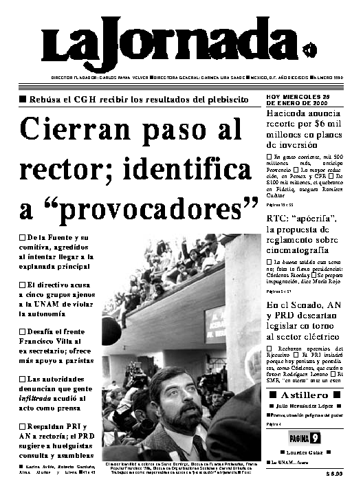 El rector identificó a colonos de Santo Domingo, Bloque de Fuerzas Proletarias, Frente Popular Francisco Villa, Bloque de Organizaciones Sociales y Central Unitaria de Trabajadores como responsables de actos de ``provocación'' e injerencia Ť Foto: Francisco Olvera