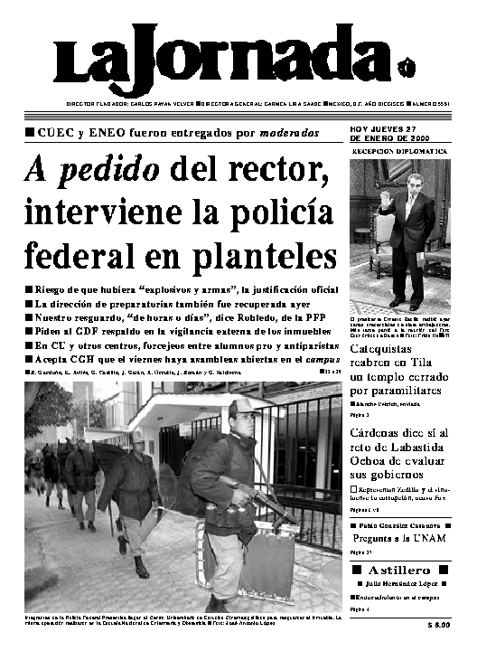Integrantes de la Policía Federal Preventiva llegan al Centro Universitario de Estudios Cinematográficos para resguardar el inmueble. La misma operación realizaron en la Escuela Nacional de Enfermería y Obstetricia Ť Foto: José Antonio López
