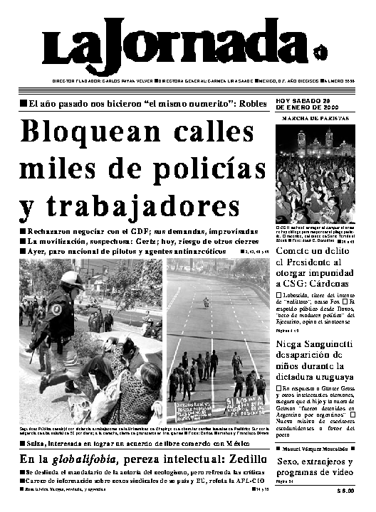 La Jornada, Coordinación de Sistemas Francisco Petrarca 118, Col. Chapultepec Morales, delegación Miguel Hidalgo México D.F. C.P. 11570 Teléfono (525) 262-43-00, FAX (525) 262-43-56 y 262-43-54