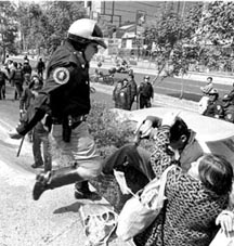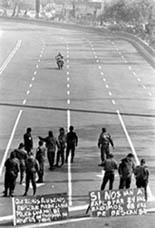 Seguridad Pública desalojó con violencia a trabajadores de la Universidad de Chapingo que obstruían carriles laterales de Periférico Sur con la exigencia de alza salarial de 50 por ciento; a la derecha, cierre de granaderos en Insurgentes Ť Fotos: Carlos Mamahua y Francisco Olvera