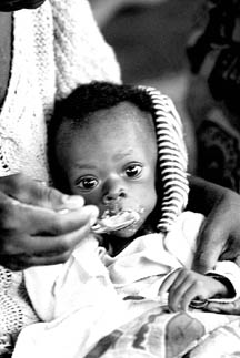 Un bebé con desnutrición grave es atendido en una clínica en Buyumbura, capital de Burundi. El pequeño procede de uno de los ``centros de reagrupamiento'' controlados por militares, en los que cientos de miles de personas, principalmente hutus, son obligadas a vivir. Los espacios fueron creados para despoblar regiones que pudieran proveer de combatientes a los rebeldes hutus, que luchan contra el gobierno dominado por los tutsis Ť Foto: Ap