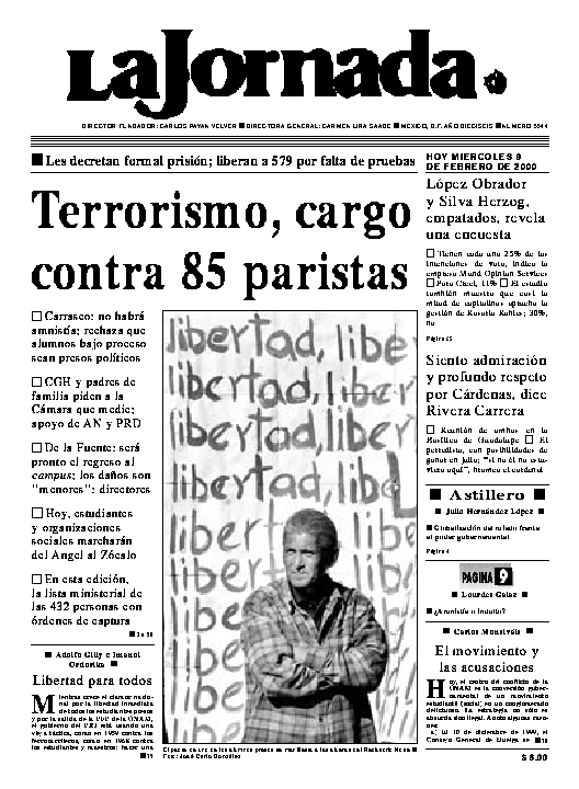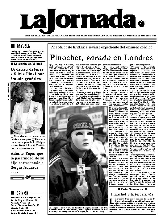 La Jornada, Coordinación de Sistemas Francisco Petrarca 118, Col. Chapultepec Morales, delegación Miguel Hidalgo México D.F. C.P. 11570 Teléfono (525) 262-43-00, FAX (525) 262-43-56 y 262-43-54