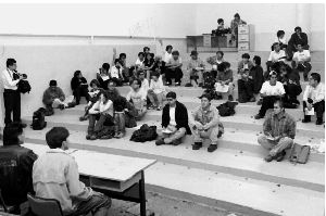 Representantes estudiantiles y de organizaciones sociales, en el auditorio Ho Chi Min de la Facultad de Economía Ť Foto: Carlos Cisneros