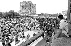 Mitin realizado en la explanada de rectoría de Ciudad Universitaria por miembros del CGH, y organizaciones sociales Ť Foto: Rosaura Pozos