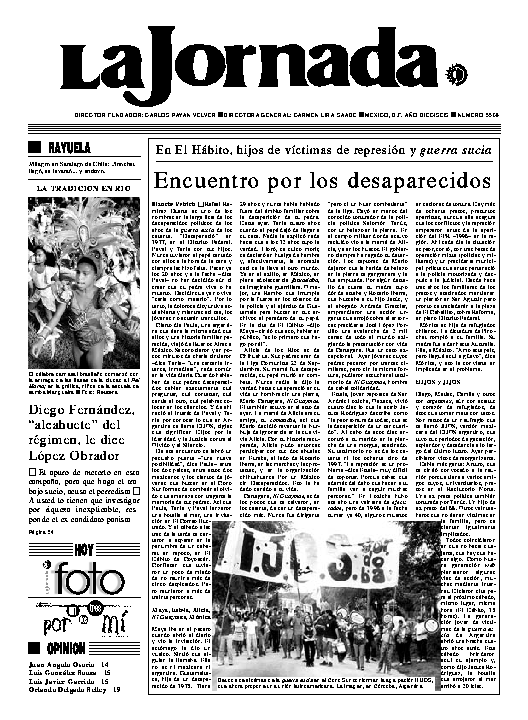 La Jornada, Coordinación de Sistemas Francisco Petrarca 118, Col. Chapultepec Morales, delegación Miguel Hidalgo México D.F. C.P. 11570 Teléfono (525) 262-43-00, FAX (525) 262-43-56 y 262-43-54