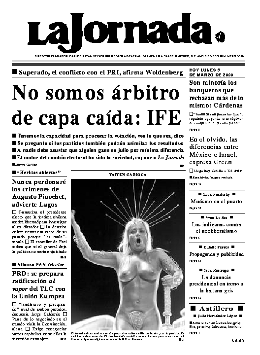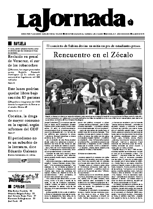 La Jornada, Coordinación de Sistemas Francisco Petrarca 118, Col. Chapultepec Morales, delegación Miguel Hidalgo México D.F. C.P. 11570 Teléfono (525) 262-43-00, FAX (525) 262-43-56 y 262-43-54
