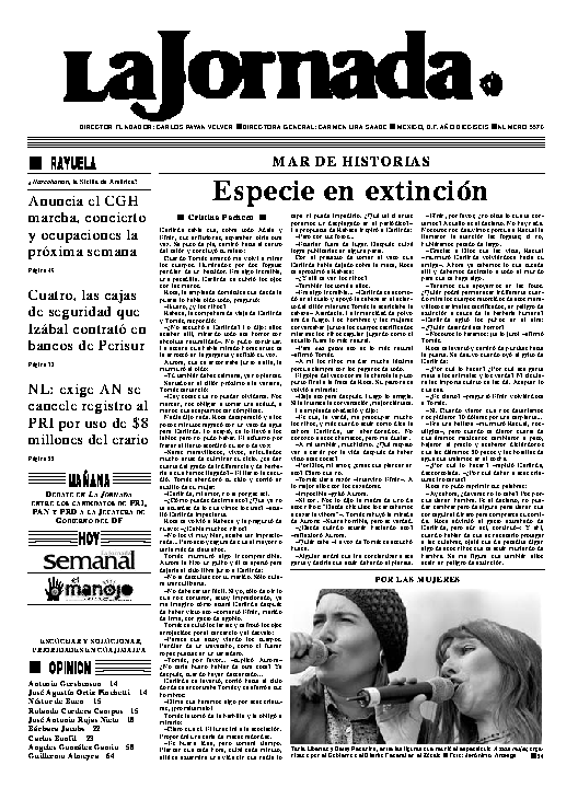 La Jornada, Coordinación de Sistemas Francisco Petrarca 118, Col. Chapultepec Morales, delegación Miguel Hidalgo México D.F. C.P. 11570 Teléfono (525) 262-43-00, FAX (525) 262-43-56 y 262-43-54