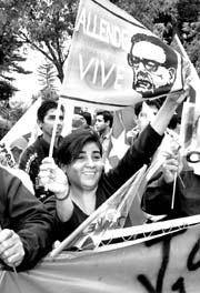 Ricardo Lagos asumió la presidencia mientras afuera del Congreso de Valparaíso cientos de manifestantes exigieron juicio contra Pinochet. El ex dictador estuvo ausente en la toma de posesión Ť Foto: Reuters