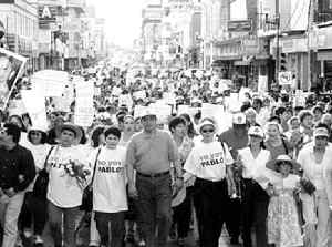 El entusiasmo de las mujeres chiapanecas se manifestó ayer en Tuxtla Gutiérrez, donde miles de personas exigieron democracia y paz. Pablo Salazar encabezó la caminata Ť Foto: Oscar León