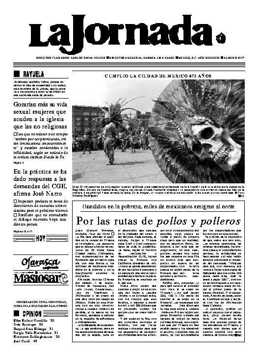 La Jornada, Coordinación de Sistemas Francisco Petrarca 118, Col. Chapultepec Morales, delegación Miguel Hidalgo México D.F. C.P. 11570 Teléfono (525) 262-43-00, FAX (525) 262-43-56 y 262-43-54