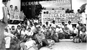 Habitantes de Santa María Ozolotepec, San Sebastián y Santa Cruz, Oaxaca, iniciaron una huelga de hambre para exigir el pago de participaciones que les prometió el gobernador de la entidad Ť Foto: Ezequiel Leyva