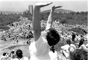 En la pirámide de Cuicuilco se reunieron cientos de personas para recibir el equinoccio de primavera Ť Foto: Duilio Rodríguez