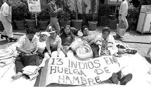 Iindígenas de Guerrero iniciaron una huelga de hambre cerca del Senado para exigir la liberación de sus compañeros en ese estado Ť Foto: María Luisa Severiano