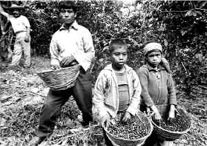 La producción de café se desarrolla básicamente en zonas indígenas altamente marginadas. En la gráfica, niños cafetaleros del estado de Chiapas Ť Foto: Pedro Valtierra