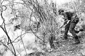 En imagen de archivo, un comunero de San Antonio Chimalapa y un soldado combaten un incendio forestal en el cerro Baúl, en el estado de Oaxaca Ť Foto: Cristina Rodríguez