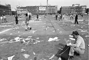 Aspecto del Zócalo después de la marcha del primero de mayo Ť Foto: Carlos Mamahua