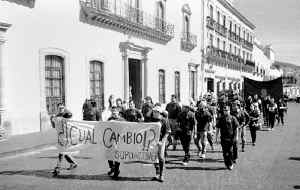 Trabajadores afiliados al sindicalismo oficial e independiente marcharon ayer por las principales calles de la ciudad de Zacatecas para conmemorar otro aniversario del Día Internacional del Trabajo Ť Foto: Alfredo Valadez