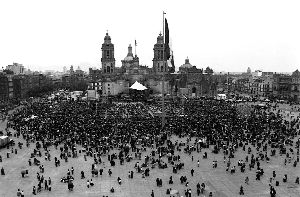 Durante la celebración eucarística previa a la procesión del Santísimo, que fue trasladado del Zócalo a la iglesia de San Felipe, en el primer cuadro de la ciudad Ť Foto: Francisco Olvera