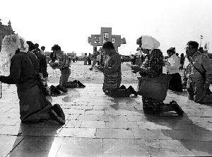 En el atrio de la Basílica de Guadalupe, decenas de personas oraron de rodillas por la salud de los enfermos Ť Foto: Tomás Bravo