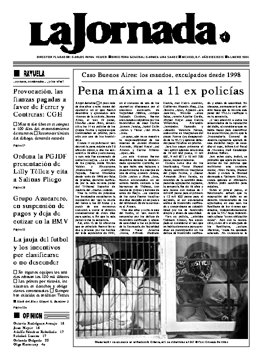 La Jornada, Coordinación de Sistemas Francisco Petrarca 118, Col. Chapultepec Morales, delegación Miguel Hidalgo México D.F. C.P. 11570 Teléfono (525) 262-43-00, FAX (525) 262-43-56 y 262-43-54