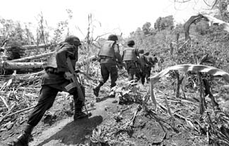Agentes de la Policía Federal Preventiva mantienen sus recorridos en poblados y caminos de Chenalhó y el Ejército Mexicano fortalece sus retenes y redobla la vigilancia en la carretera que comunica a los Altos; la imagen, en Nueva Aurora, Pantelhó Ť Foto: Tomás Bravo
