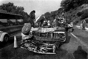 Tres personas muertas fue el saldo del choque entre tres vehículos, en el kilómetro 72 de la carretera México-Cuernavaca Ť Foto: Jerónimo Arteaga