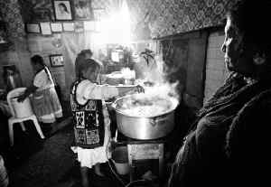 Durante los preparativos de la comilona con la que se festejará a una joven quinceañera en un poblado mexiquense Ť Foto: Jesús Quintanar