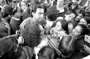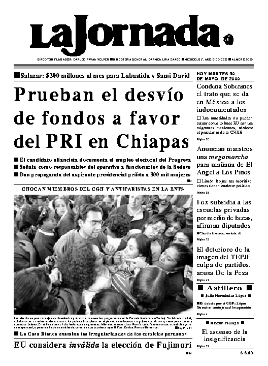Las elecciones para consejeros universitarios y técnicos, que estaban programadas en la Escuela Nacional de Trabajo Social de la UNAM, culminaron en un enfrentamiento cuando los paristas irrumpieron en el plantel, se enfrascaron a golpes con alumnos, destruyeron urnas y quemaron boletas. En el incidente no hubo lesionados de gravedad. Mientras, el rector Juan Ramón de la Fuente sostuvo que el diálogo no se suspenderá, a pesar de hechos de violencia como los que ocurrieron ayer Ť Foto: Carlos Ramos Mamahua
