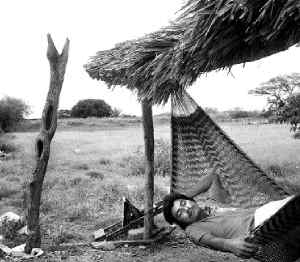 Un vendedor de hamacas descansa en una palapa de La Ventosa, Oaxaca Ť Foto Jesús Quintanar