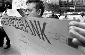 Seguidores de El Barzón exigieron ayer al Instituto para la Protección al Ahorro Bancario que aclare que el organismo de deudores no ha recibido préstamos que forman parte del costo del rescate de las instituciones de crédito Ť Foto: Jerónimo Arteaga