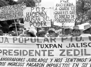En imagen de archivo, plantón de defraudados en cajas de ahorro, sobre la avenida Constituyentes en mayo pasado Ť Foto: Guillermo Sologuren